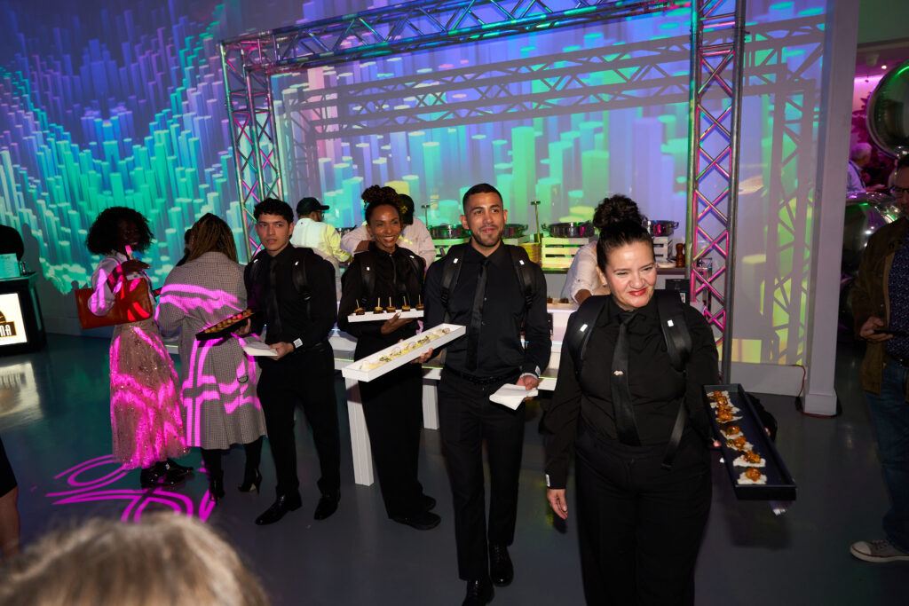 With its 20-foot ceilings, 145 feet of seamless projection mapping, and sleek all-white interiors, Lavan Midtown provided the perfect backdrop for the evening’s design and production. The space was transformed with ambient lighting and vibrant branded visuals that immersed guests from the moment they walked in.